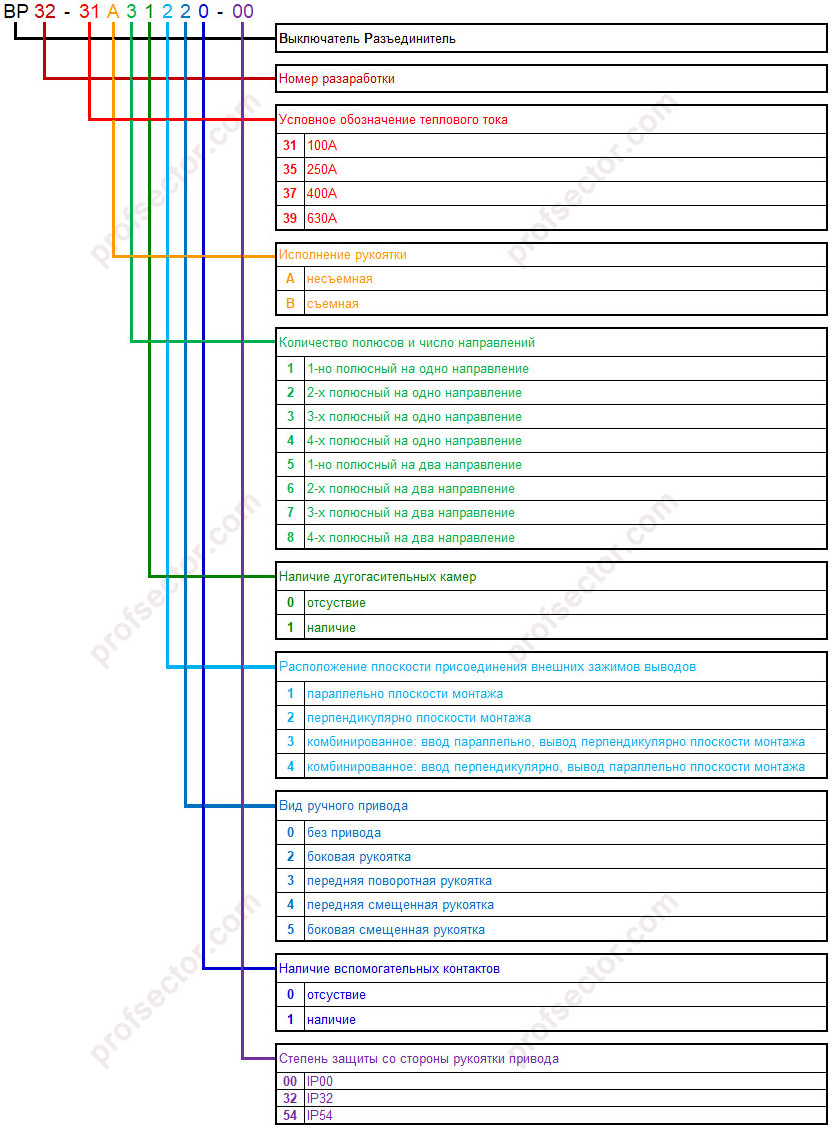 Расшифровка обозначения выключателя-разъединителя ВР-32