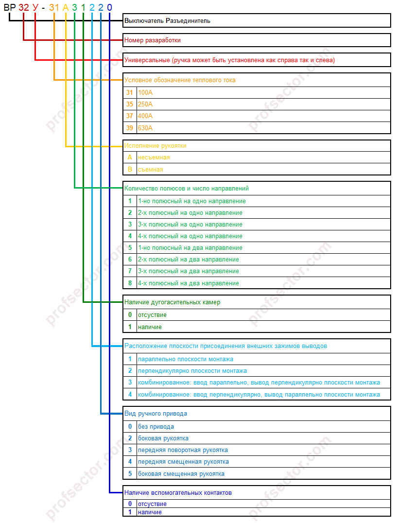 Расшифровка обозначения выключателя-разъединителя ВР-32