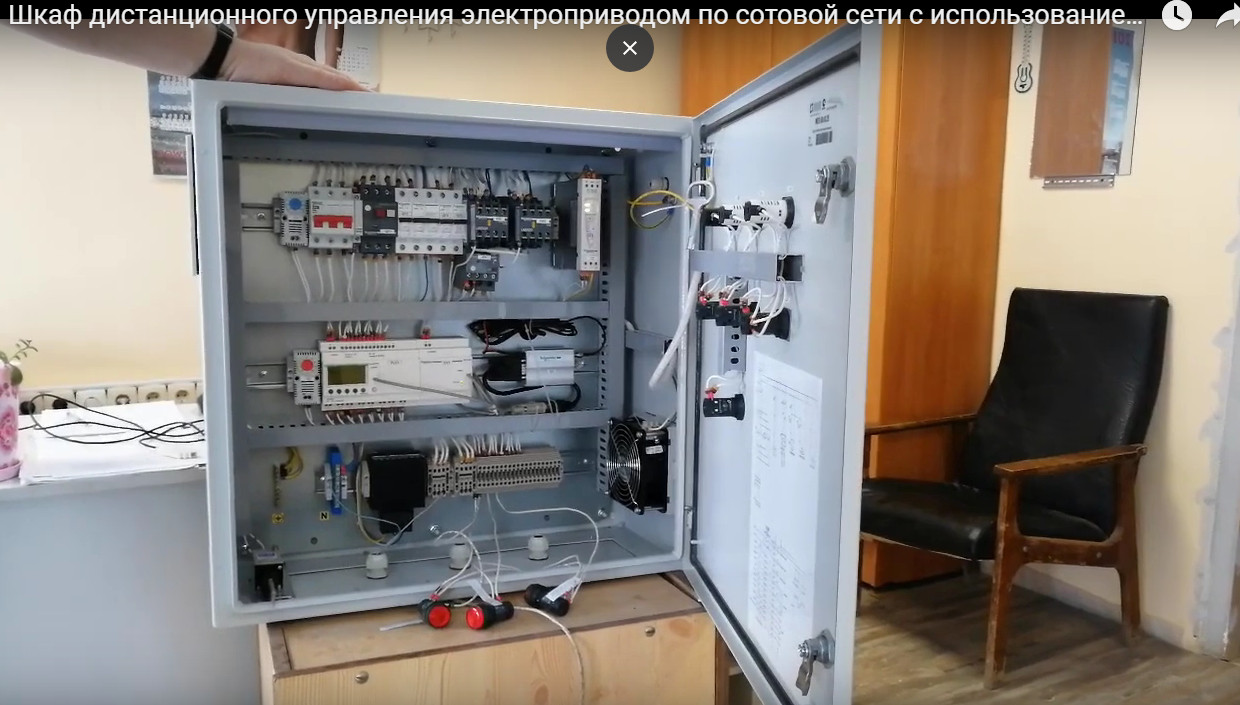 В случае аварии, такой как: отключение вводного автомата защиты электродвигателя или теплового реле, получение сигнала от аварийных датчиков, аварийные концевые выключателей, лампа индикации шкафа показывает аварию. На телефон приходит сообщение о произошедшей аварии с кодом аварии.